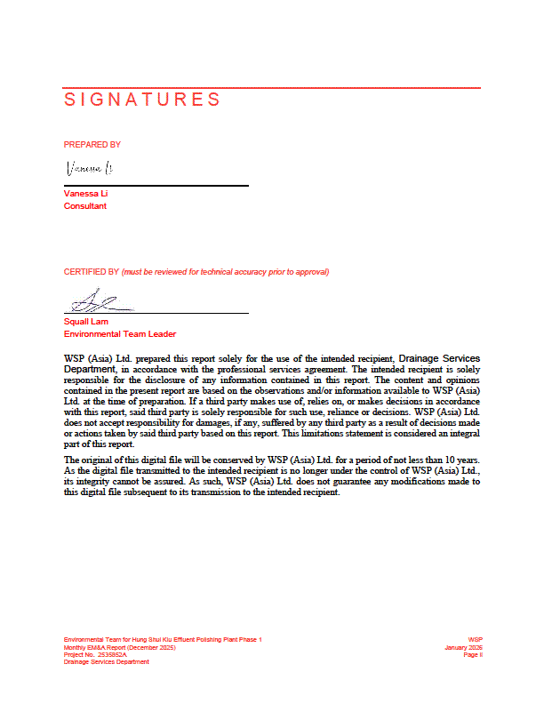 CONTRACT NO. HATS 07/2023 ENVIRONMENTAL TEAM FOR HUNG SHUI KIU EFFLUENT POLISHING PLANT PHASE 1