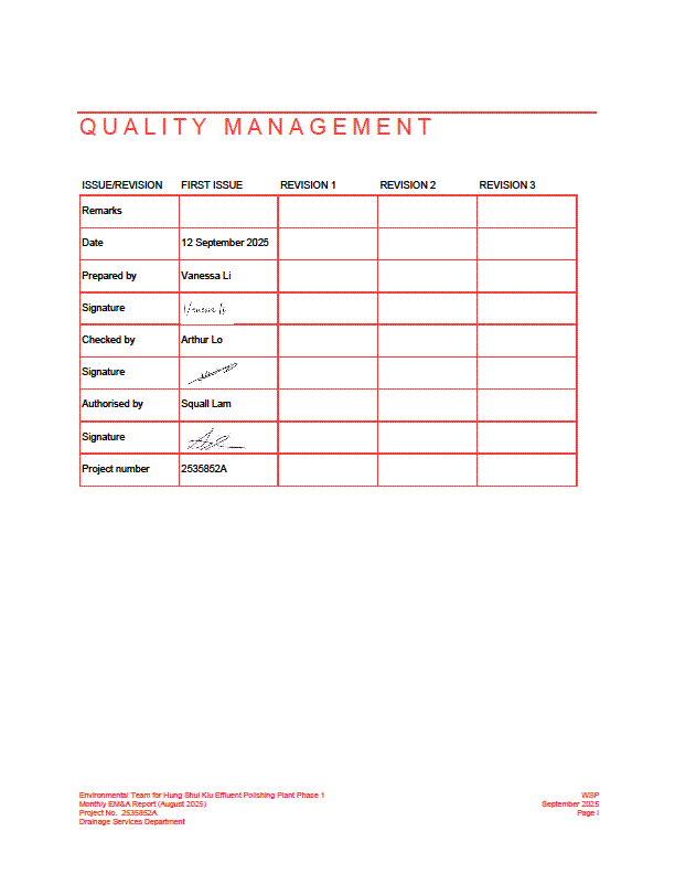 CONTRACT NO. HATS 07/2023 ENVIRONMENTAL TEAM FOR HUNG SHUI KIU EFFLUENT POLISHING PLANT PHASE 1