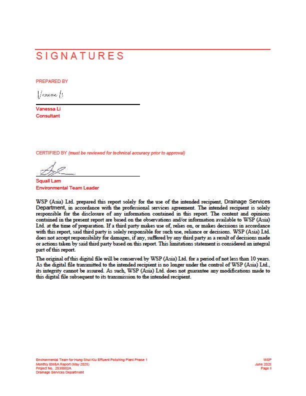 CONTRACT NO. HATS 07/2023 ENVIRONMENTAL TEAM FOR HUNG SHUI KIU EFFLUENT POLISHING PLANT PHASE 1