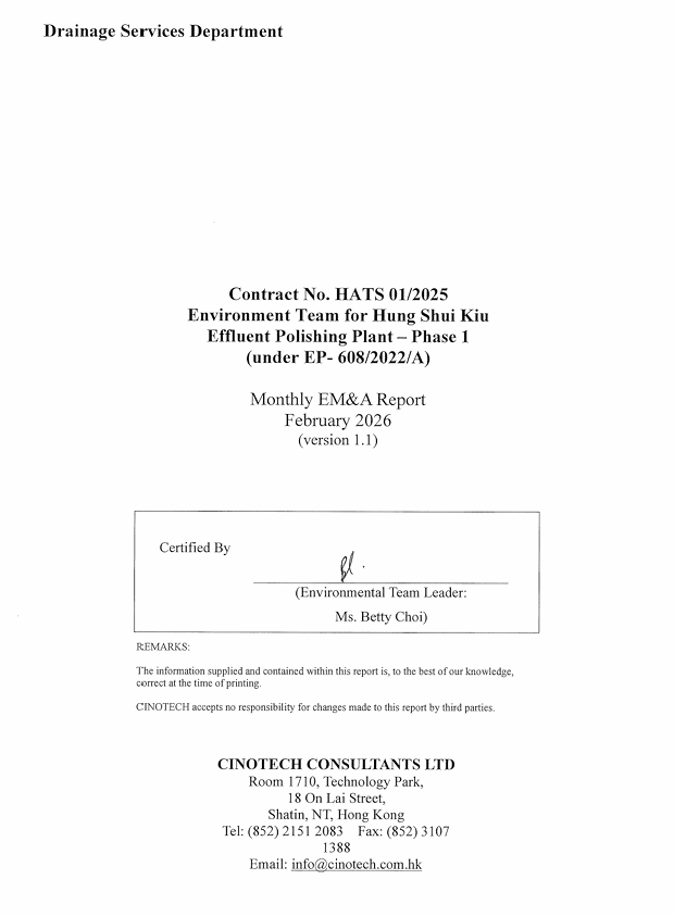 No. HATS 01/2025 Environment Team for Hung Shui Kiu Effluent Polishing Plant –